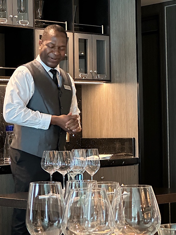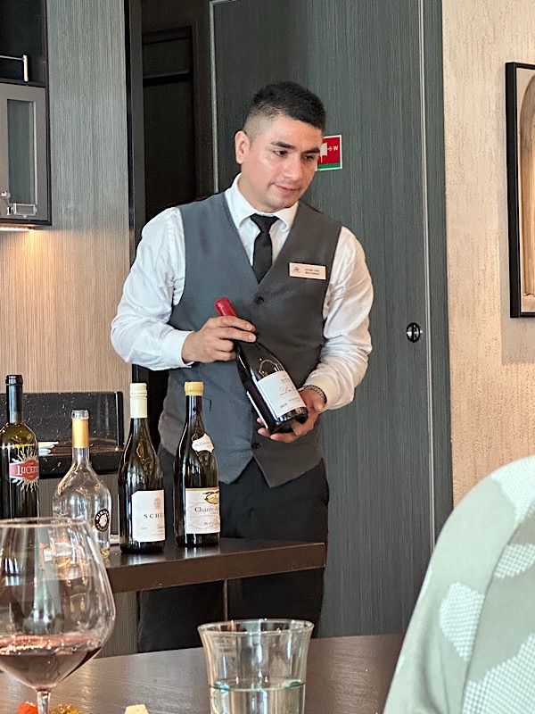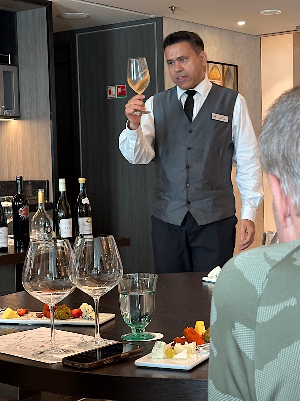 Friday, March 6, 2026 Day at sea, walked for 1 hour inside around deck 3, it was raining and the deck outside was slippery plus the treadmills were all occupied, art class, lunch. Fabulous wine tasting, 5 of the ships premium wines presented by 3 of the ships Sommeliers, paired with a variety of cheeses and fruit. Galley tour, dinner.