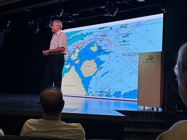 Saturday, March 7, 2026 Day at sea, breakfast, art class, interesting lecture on navigating the Great Barrier Reef and aTorres Strait by the Reef Pilot.