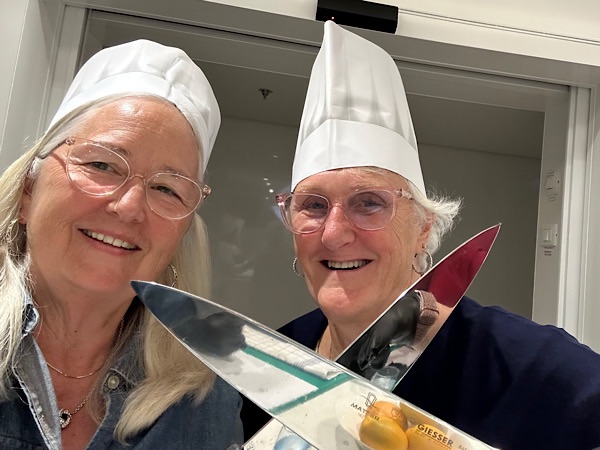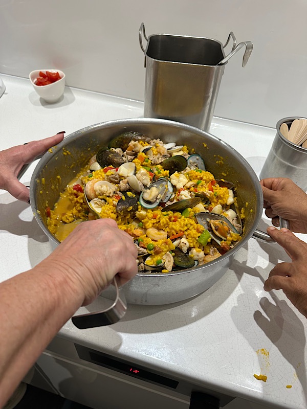 Sunday, March 8, 2026 Day at sea, walked for a an hour, lunch, cards, Tammy and I had a cooking class. We made Paella, as the main course, Spanish meatballs as the appetizer. So good!