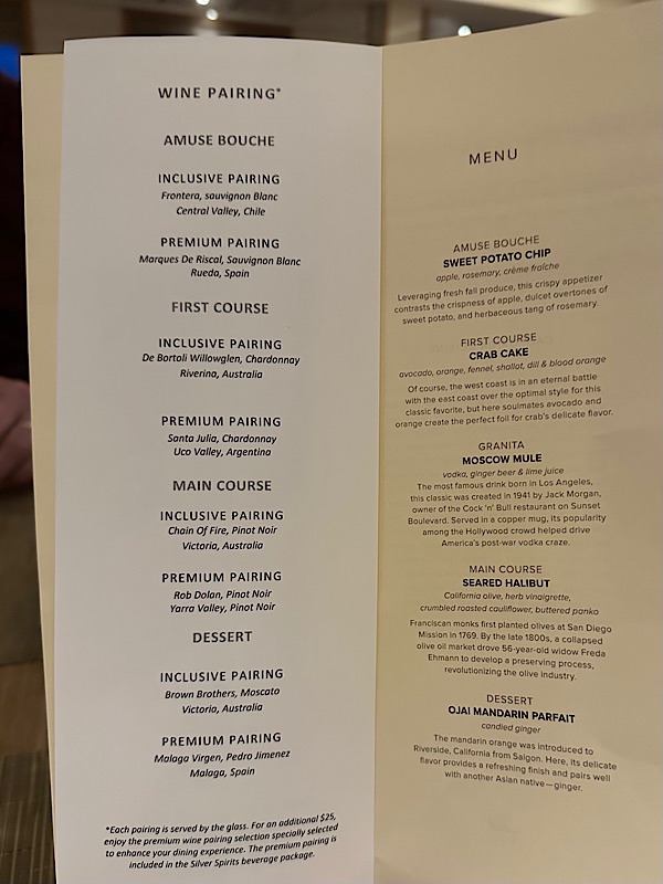 Tuesday, March 10, 2026 Day at sea, walked 3 miles outside around deck 2, art class, lunch, pool time. Dinner at the Chef’s Table. A four course meal paired with premium wines.