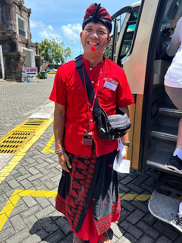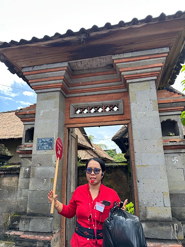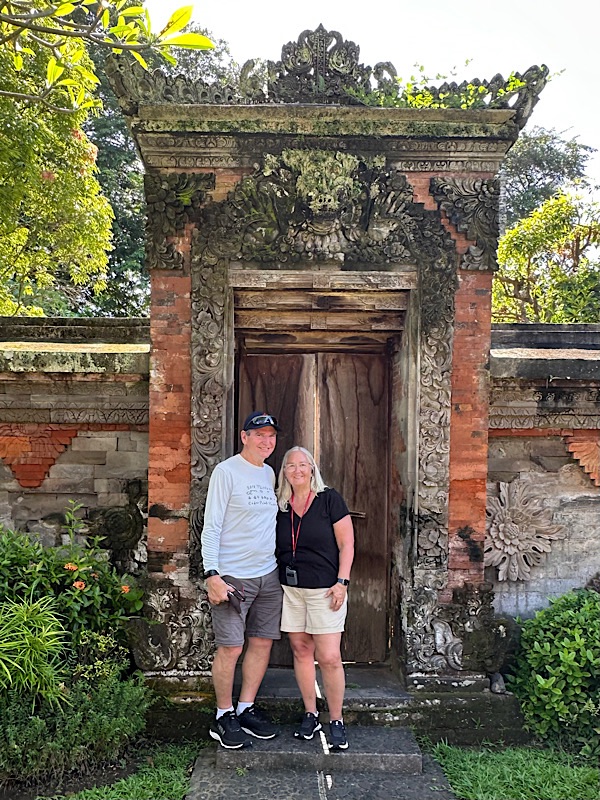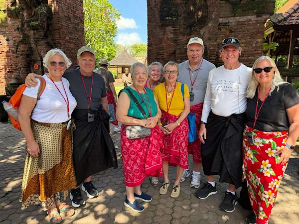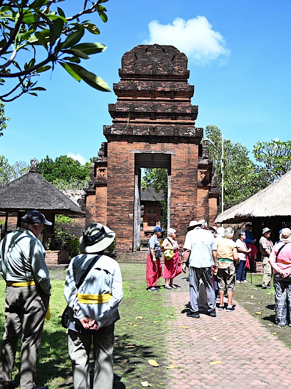 Hindu Temple excursion. 14th-century Pura Maospahit, one of Denpasar’s oldest temples with its red-brick architecture and intricate carvings. We all wore sarongs to cover our legs. It is customary to maintain modesty, respect, and sanctity within a holy space. Both men and women covered their legs.
