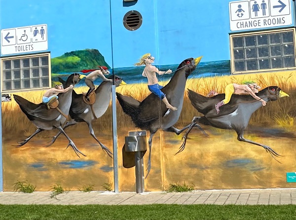 Our last stop was in the village of Merimbula where we walked around the shopping area of the village. There are huge oyster farms in nearby Merimbula Lake.