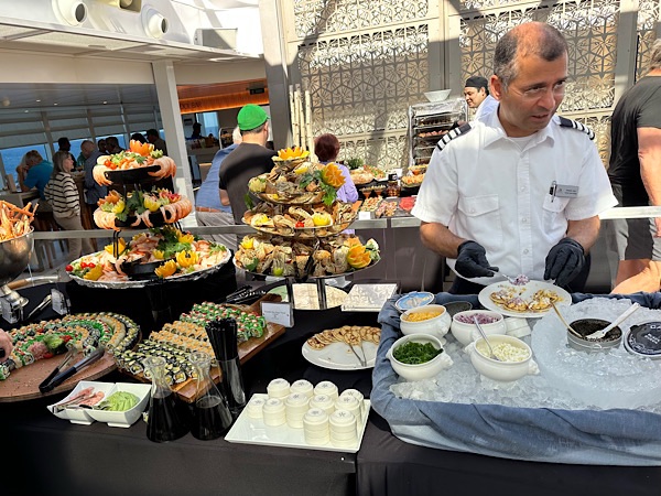 Walked 3.2 miles outside on deck 2, then the most incredible brunch on the pool deck! Celebrating the fabulous cruise we all had together!