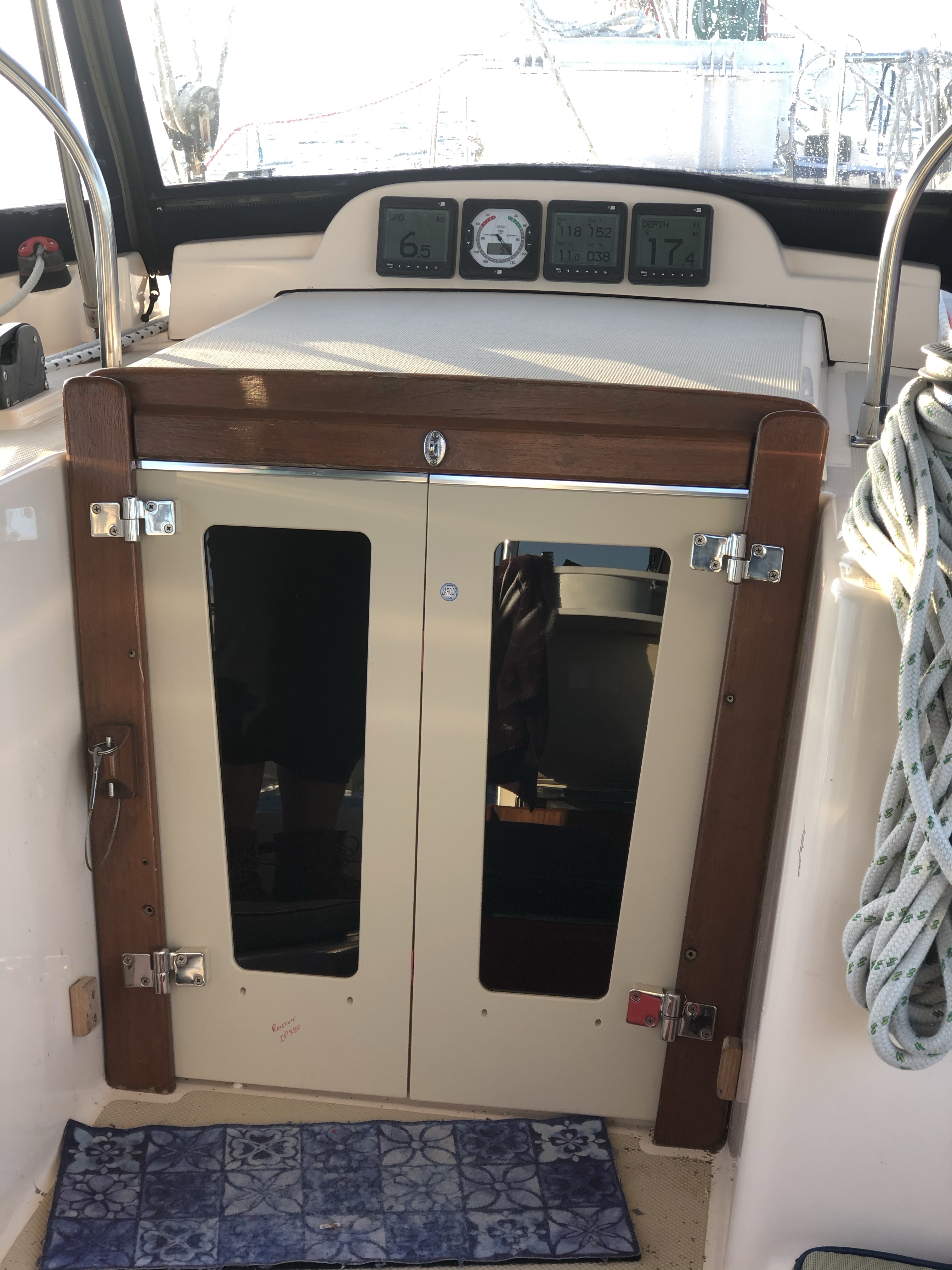 Love the new doors, so much better than the 3 boards! Happy Sailing…
