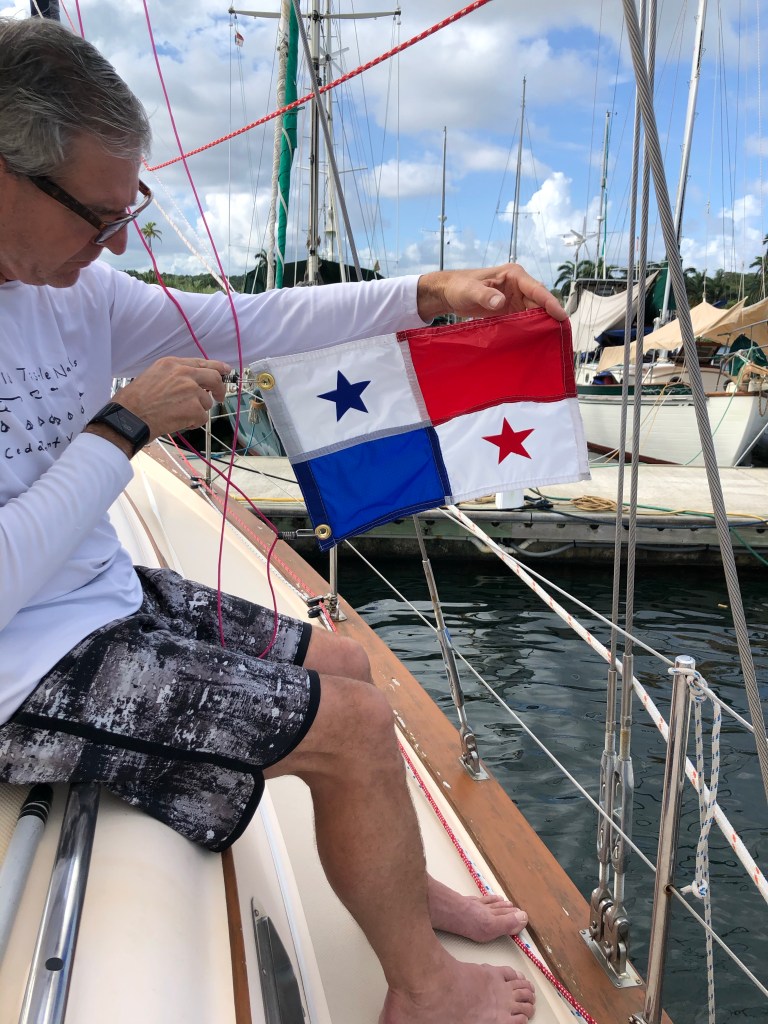 Today we decided was a “do nothing” day. I did finish making our Panama courtesy flag, Danielle swam laps in the morning and Dan got the water maker connected and running. A lot of time was spent at the pool, reading.