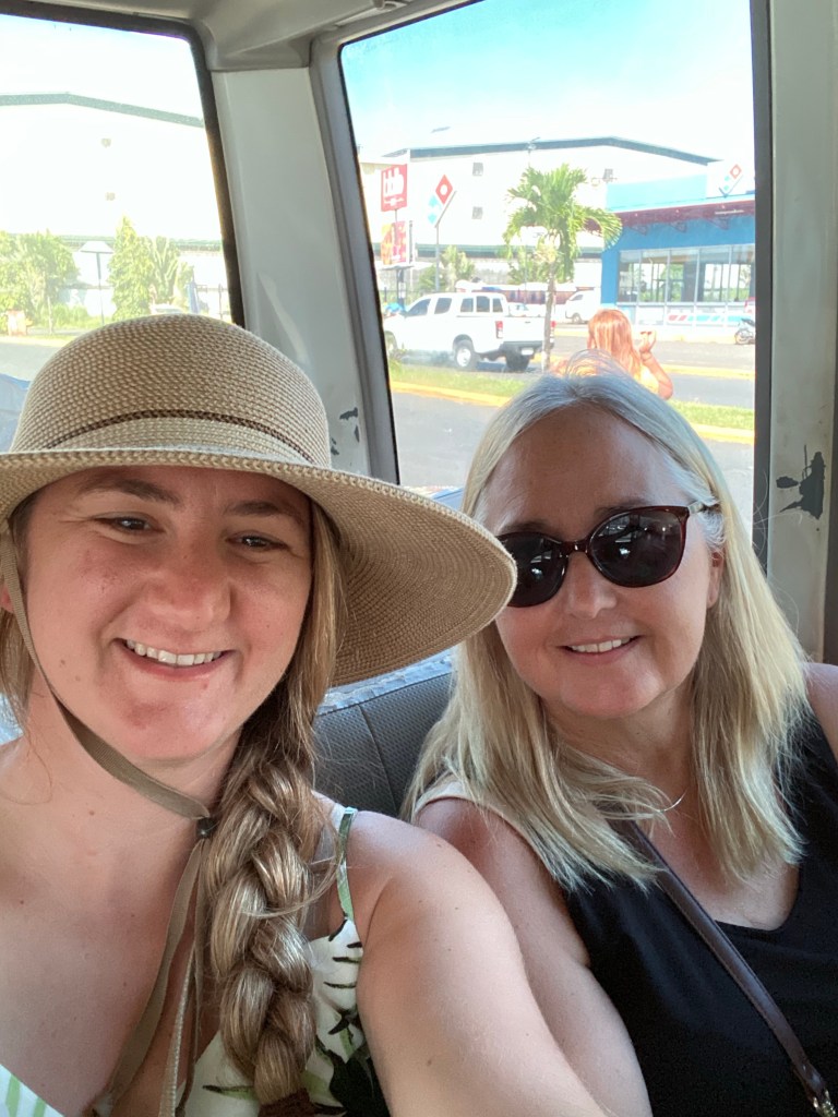 We went shopping! That was an experience. There’s a shuttle bus that takes you from the marina to a shopping center in Colon, returning to the marina 2 hours later. On the way we crossed the new bridge where we had a view of the first set of canal locks. The store was full of many familiar brand products but in Spanish. Our list was mostly for produce and cereal.