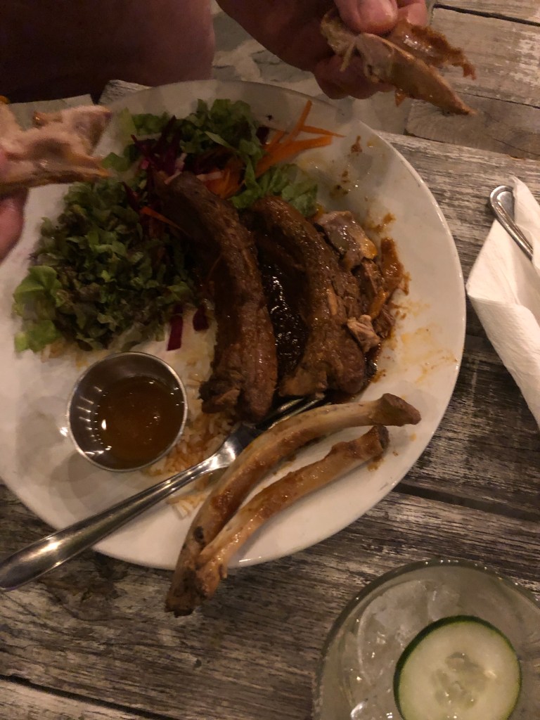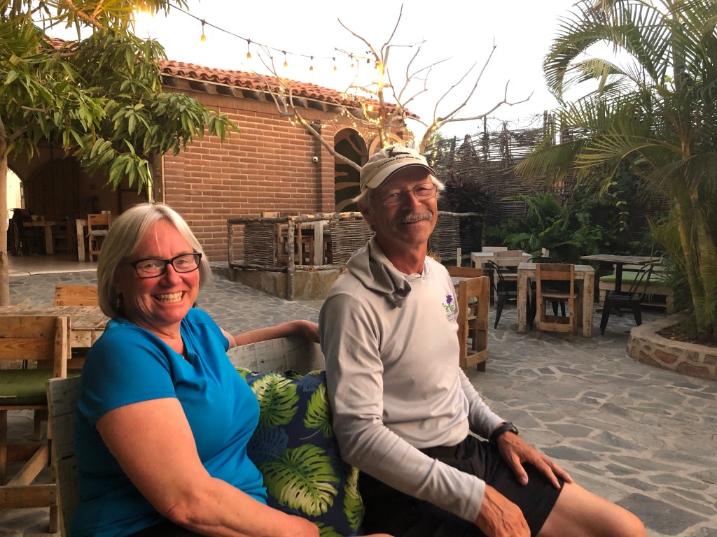 Returned back to boat around 4pm, put everything away, decided to take a drive around Cabo. We ended up at Todos Santos, a small artsy town filled with shops, galleries and restaurants. Everything was closed, however there was one restaurant open, we stopped for dinner at this quaint establishment La Morena and were the only ones there. Joy and I had Chicken Mole, John had ribs and Dan had a shrimp dish. Excellent food! (And they had wipes an hand sanitizer too.)