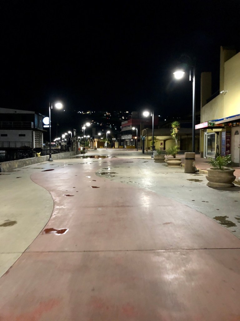 After dinner, spaghetti with zucchini, onion and garlic in the sauce, we donned our masks and took a walk down the deserted waterfront.