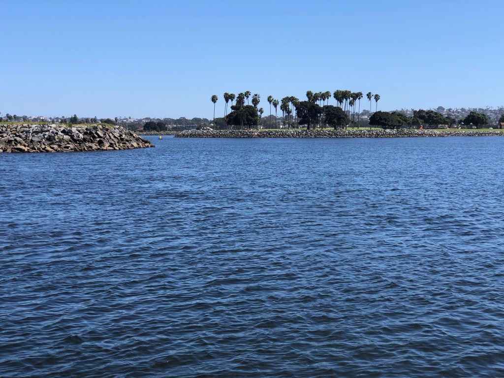 Departed San Diego mid morning only to drop anchor 13.2 miles away Mariners Basin, Bonita Cove at Mission Bay. We will be doing several short passages passing time waiting for our new dinghy to be ready on Tuesday.