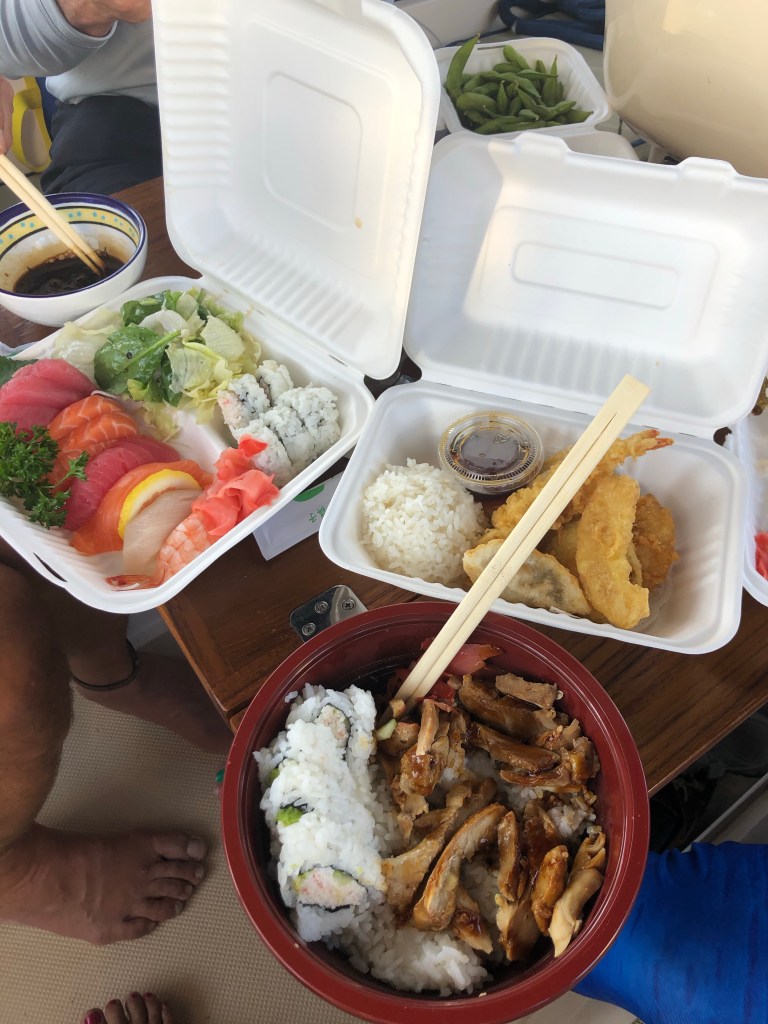 For dinner we ordered take out from Sushi Go Go which is next to the marina.