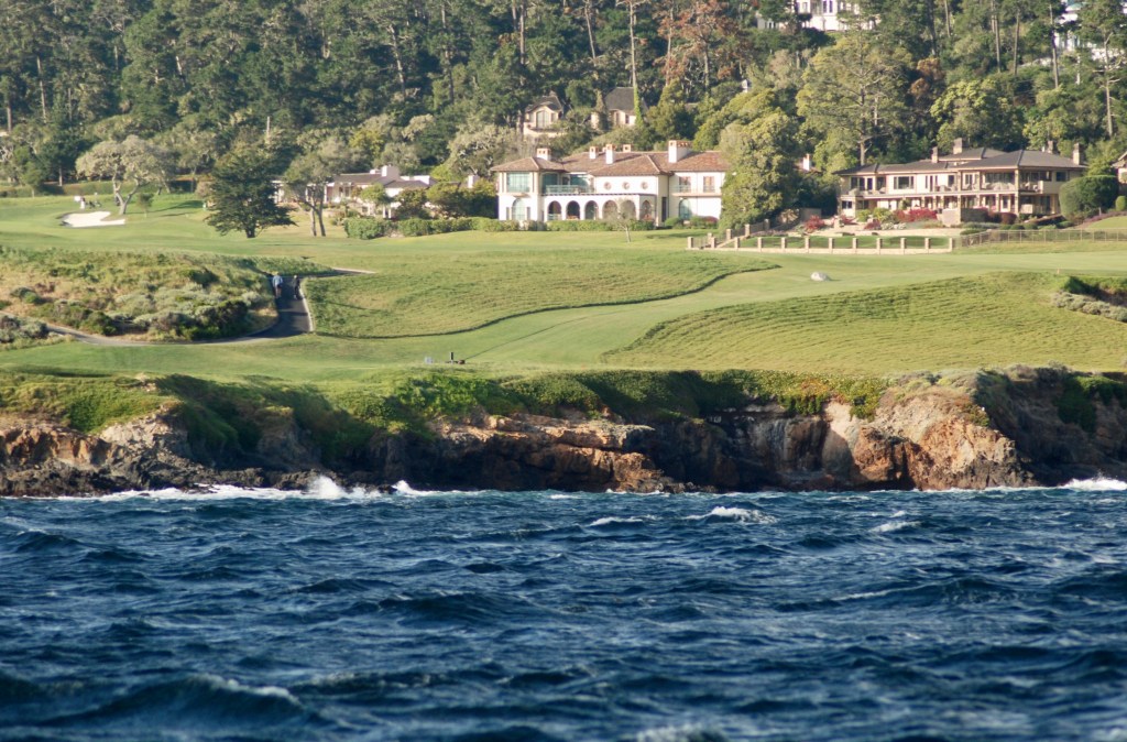 Our plan was to anchor at Arrowhead Point, holes 6,7 & 8 next to Pebble Beach Golf Course. With a strong south wind of 25 knots true and rolling waves, it was not a good situation to anchor. So we rounded the corner to Monterey and got a slip in a marina.