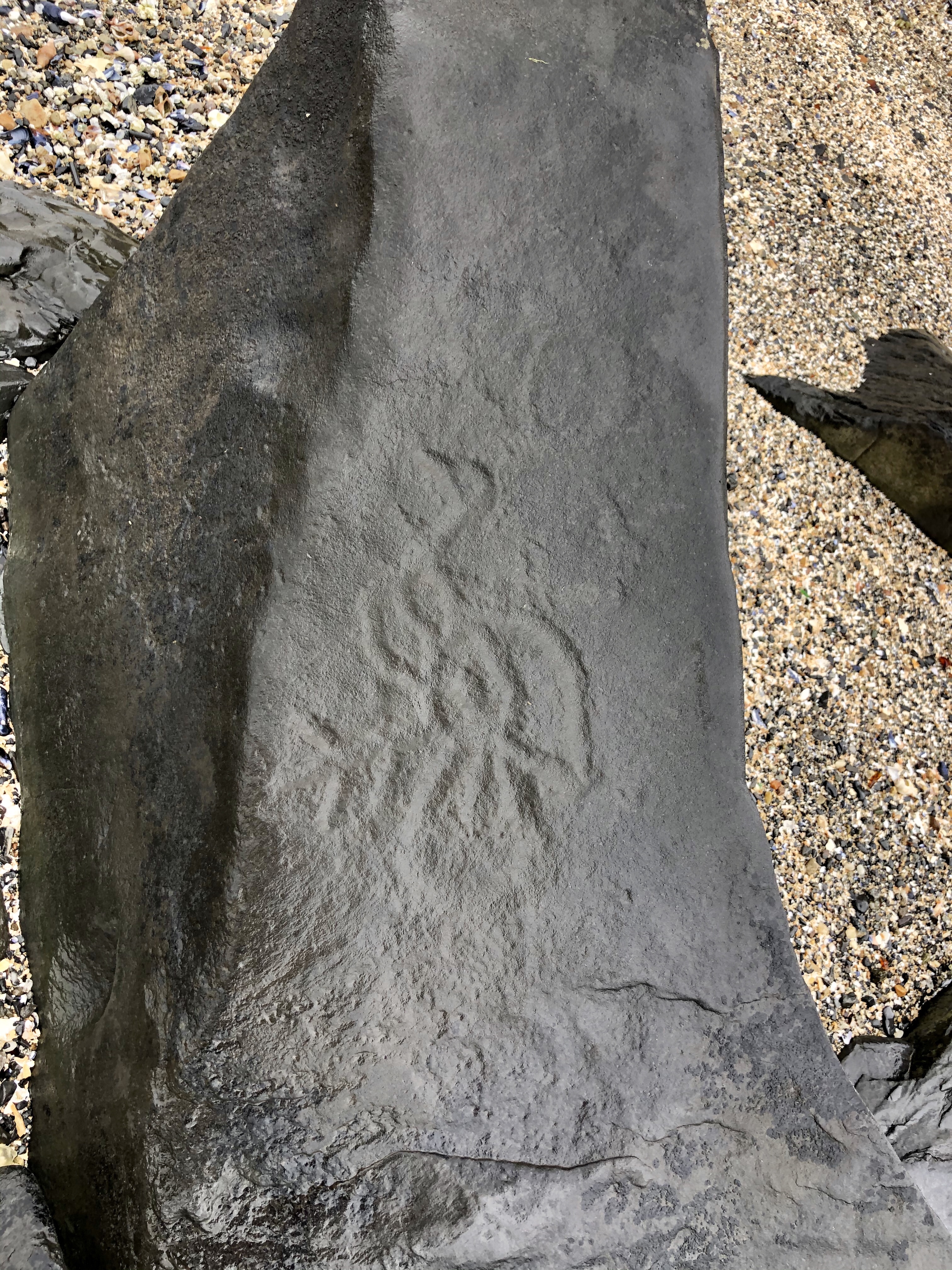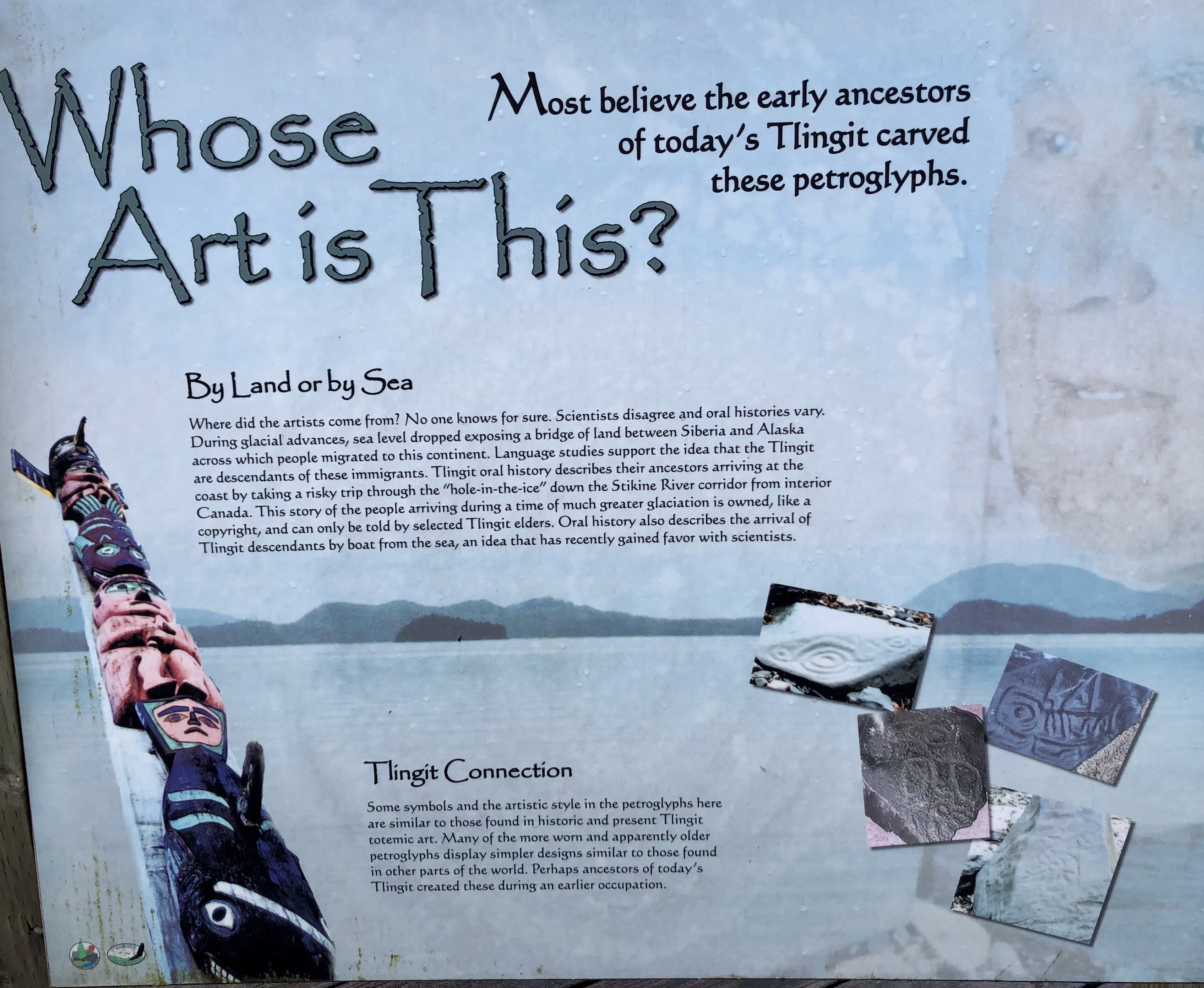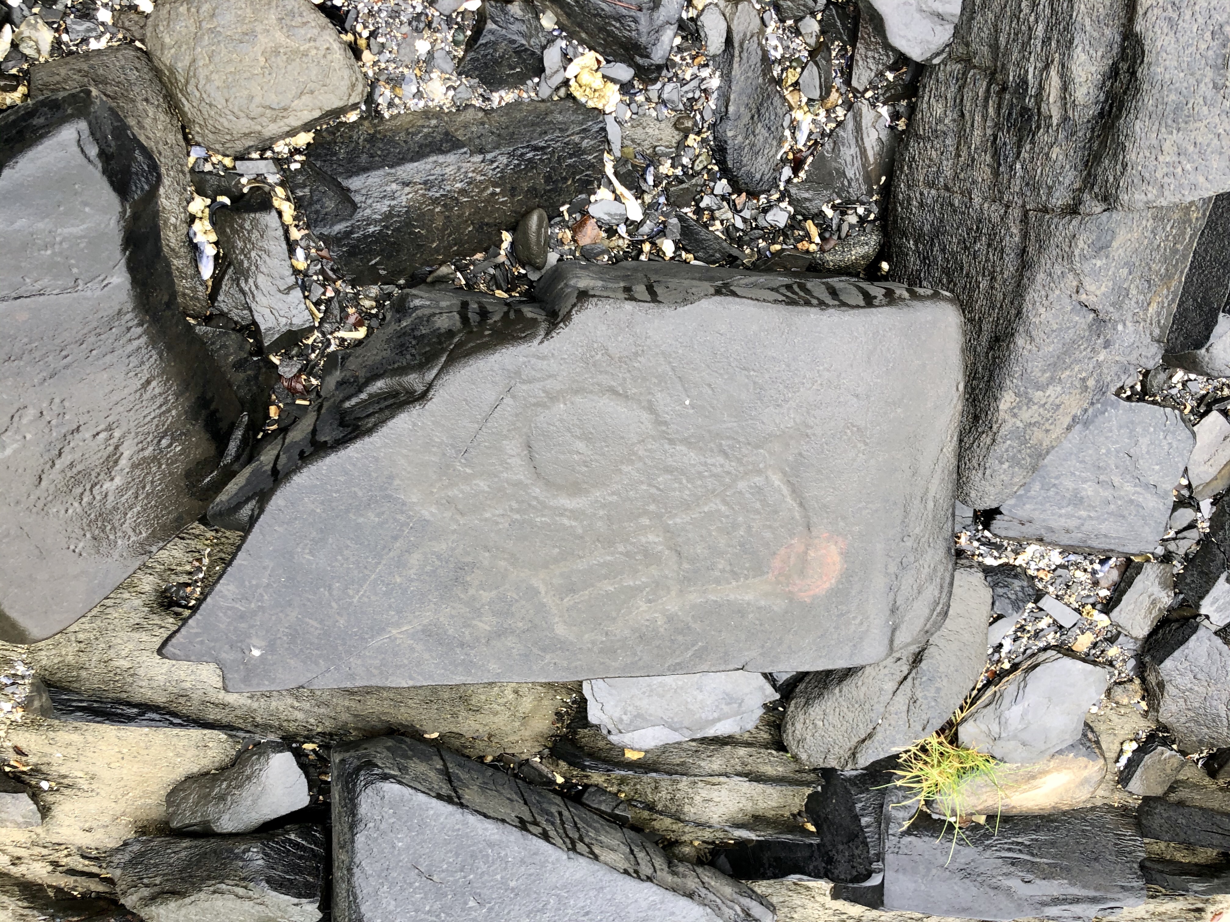 Saturday July 25- a 6 mile walking day. Petroglyph Beach State Park, at low tide one can see some of the best surviving examples of native artists in southeast Alaska. This beach has the highest concentration of petroglyphs, rock carvings.