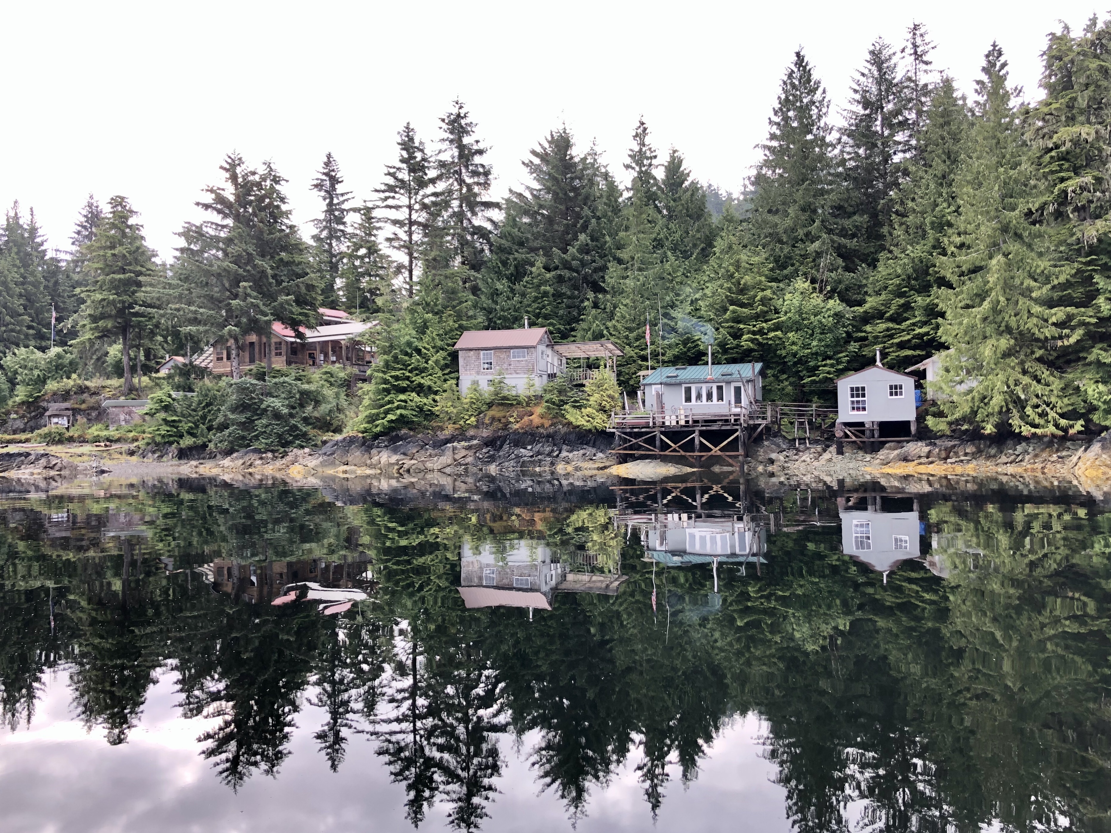 Monday July 27- Meyers Chuck, is off the grid, with no roads or cars, accessible only by boat or seaplane is a quaint area of approximately 25 residents located about halfway between Ketchikan and Wrangell. There is a dock for transients to tie up to. In normal times, during the summer, the dock would be full with boats rafted off each other two deep. We walked a trail that meandered by nearly every residence. We spoke to several people, all were so friendly and offered their knowledge of the town’s history. They even have their own zip code, the post office is open every other Tuesday, when the postmistress hangs out the flag.