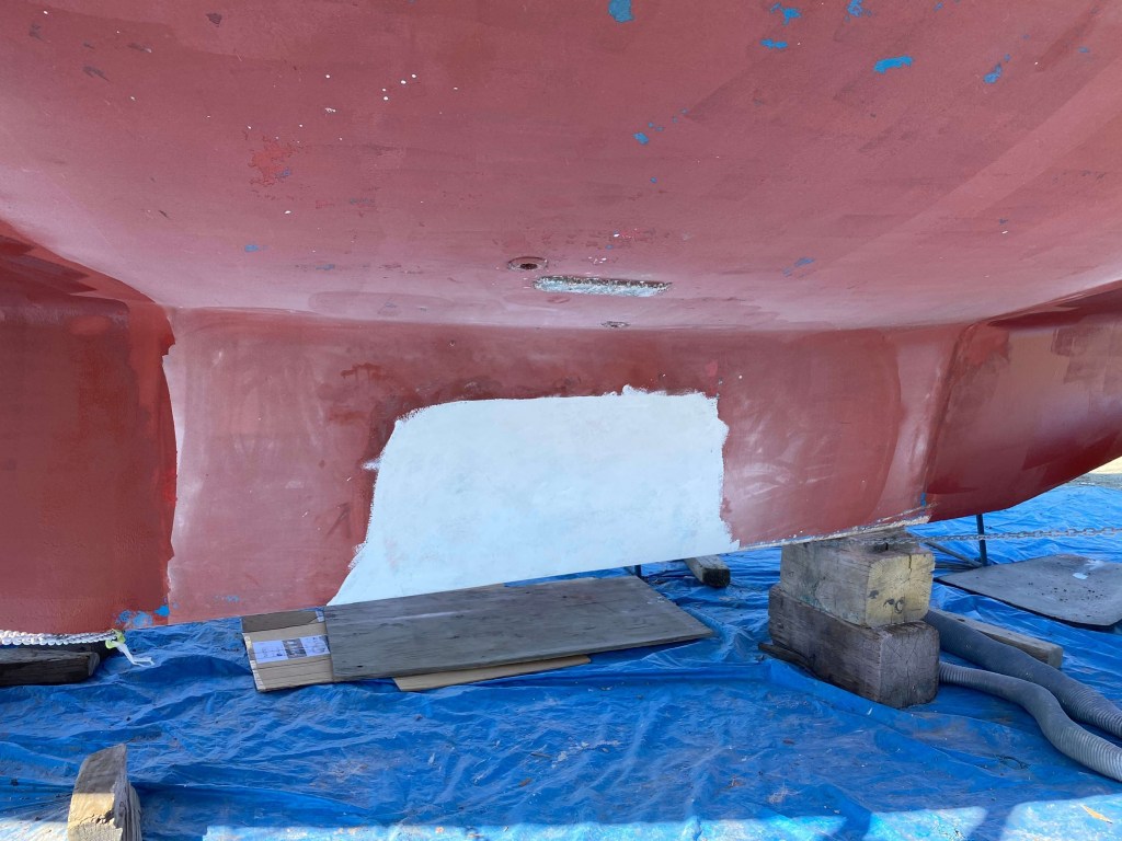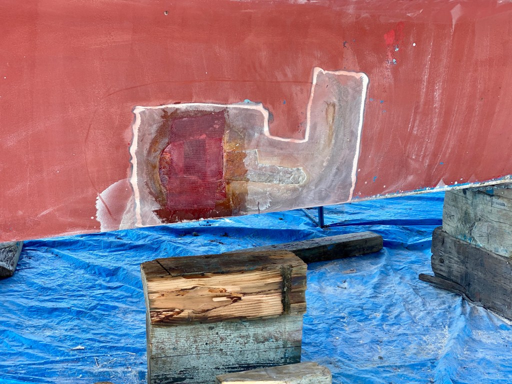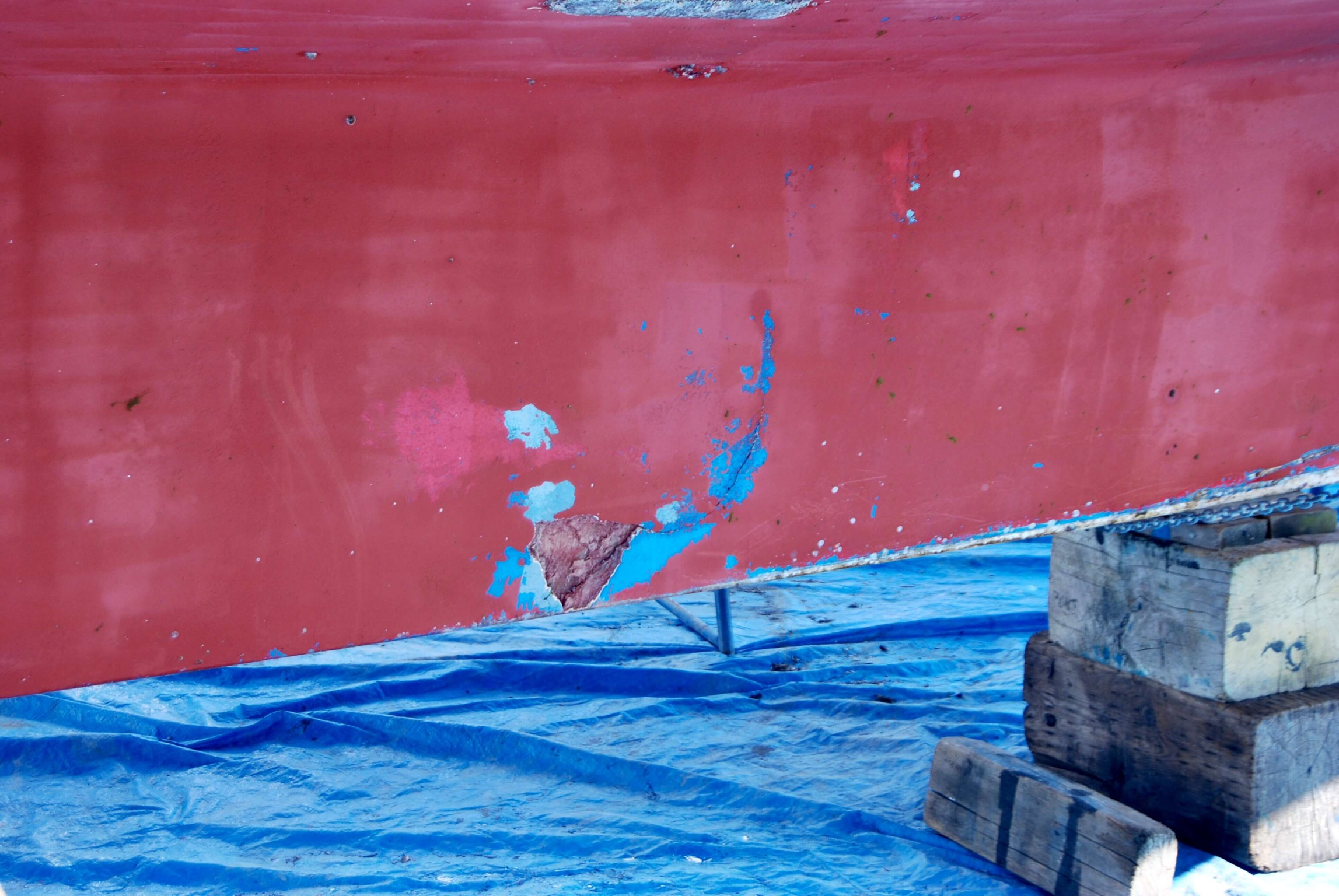 Monday August 10- Happy Birthday Rachael (and Andrea)! Trance was hauled out of the water this morning. We wanted to check the area where the whale hit us before we cross the Pacific Ocean.