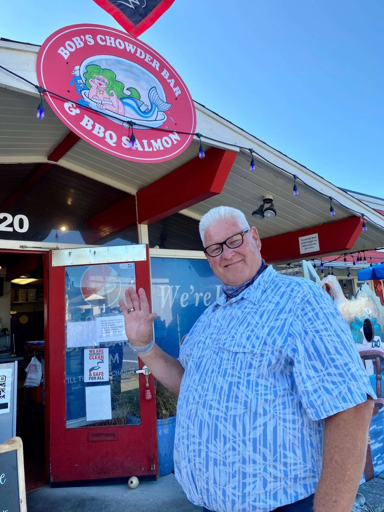 For dinner we went back to Bobs for more clam chowder. Bob came outside to chat with us. Nice guy, the food is great! 5.9 miles walking.