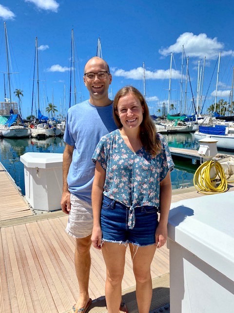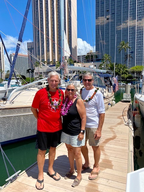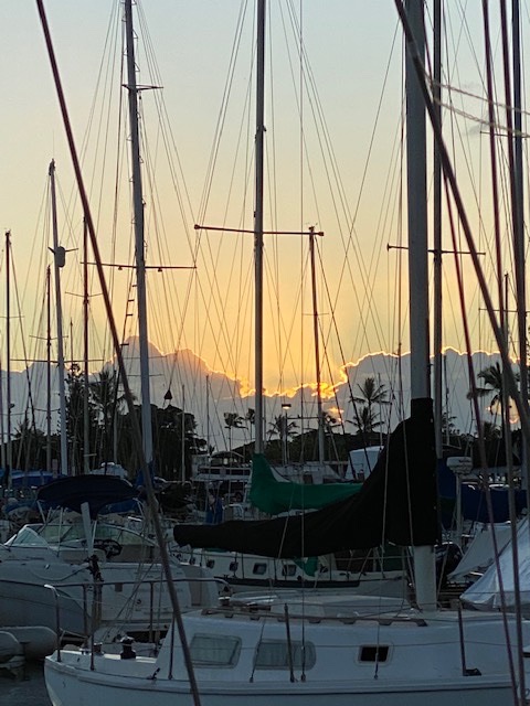 Friday, September 25, we had visitors this morning! Julie Miller and her husband Will are in the Navy, stationed at Pearl Harbor. We’ve known Julie’s parents for decades through sailboat racing Thistles. They were kind enough allow us to ship boat parts to their house. Julie brought us beautiful Hawaiian Leis!
