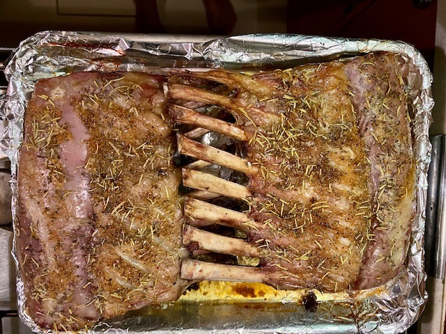 A few days ago we met Yana and Joey who own the Chart House Waikiki restaurant. Real nice people! Today the restaurant was selling “meal kits” and bottles of wine at half price. On the menu was Rack of Lamb, fresh baked Baguettes and Arugula with a Mango White Balsamic dressing. We purchased two meals for the three of us. Dinner tonight, with mashed potatoes.