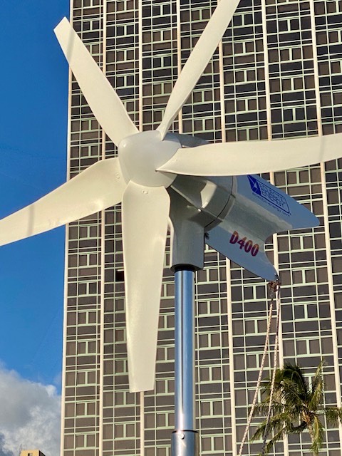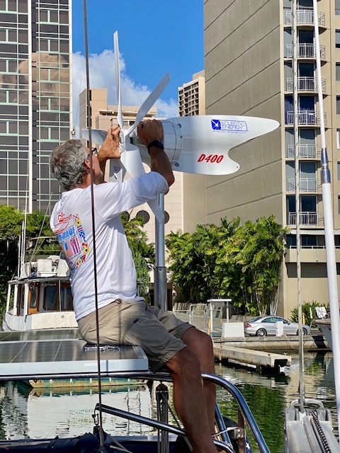 The rest of the Dan and Larry installed our new D400 wind generator that was shipped to Julie.
