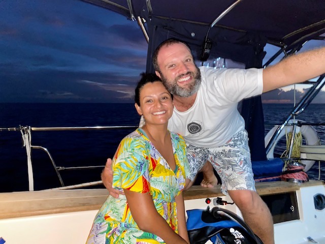 Evening sundowners on our boat with our new friends from Germany, Christoph and Larissa.