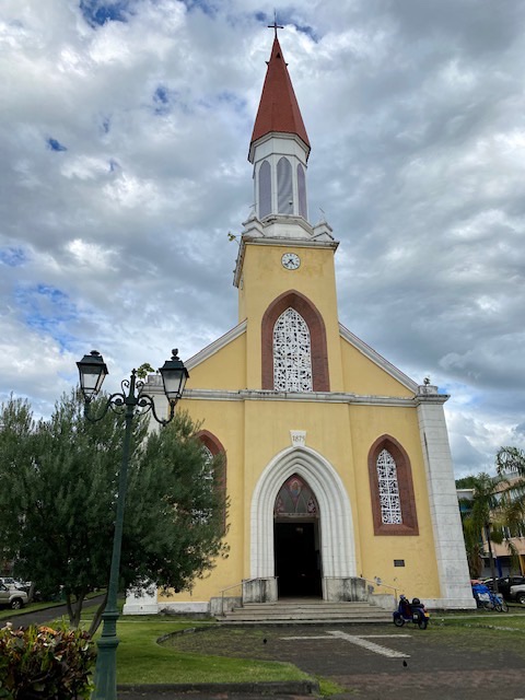 Within other churches in FP, we’ve seen similar statues, Jesus holding a breadfruit