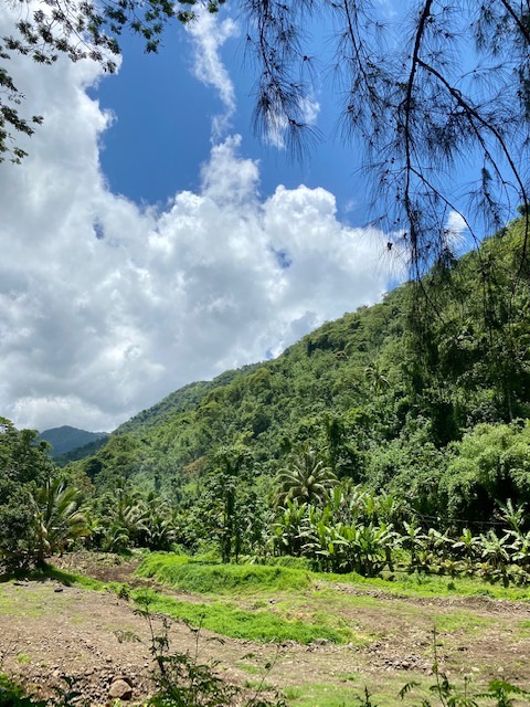 Where the road ends on the southern coast, in Teahupoo at the Havae Pass, has become world known area for championship surfing. The barrier reef lies very shallow and with a slowed distant drop off of the reef, this produces tunnels of waves. The water was quite calm on this day.