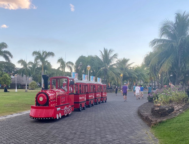 This kiddie train runs through the park, at dusk it’s all lit up.