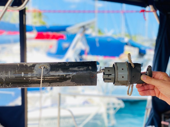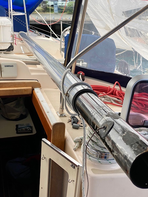 In the afternoon we fixed the spinnaker pole. The release line broke months ago.