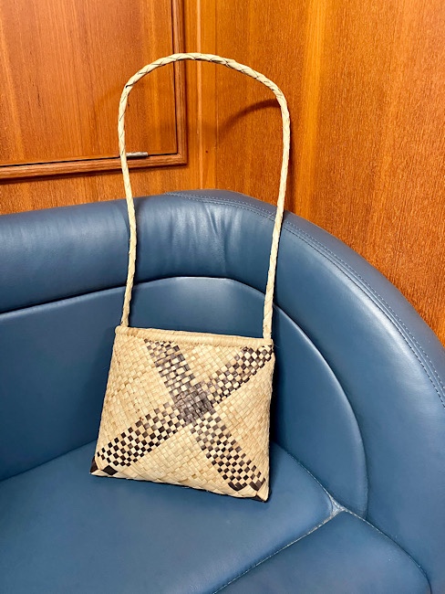 A few of the older women in the village asked if any of us women had spare reading glasses and possibly perfume and shampoo. (Not sure why I even had a bottle of perfume on the boat, haven’t used it over a year, I’m sure it will be well liked.) In exchange we were given hand woven items such as bags or rugs. I chose the small bag.