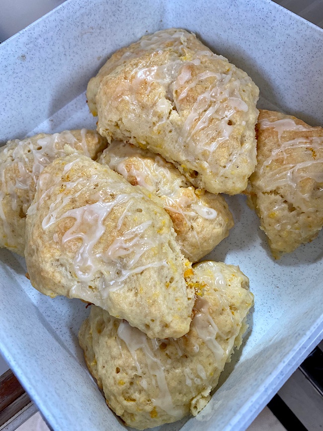 Baking day…banana bread, orange scones with an orange glaze, peanut butter protein bars, started a loaf of sourdough bread. Also diced and put into containers to use later, green peppers, red peppers and onions. When the wind is light it is easier to do these things.