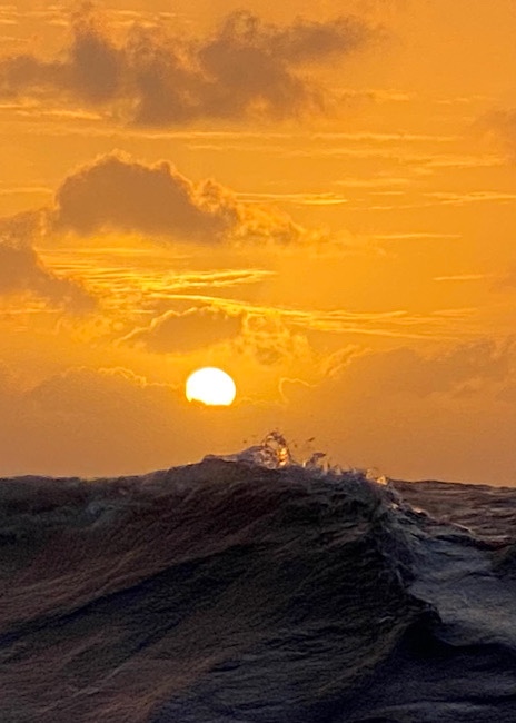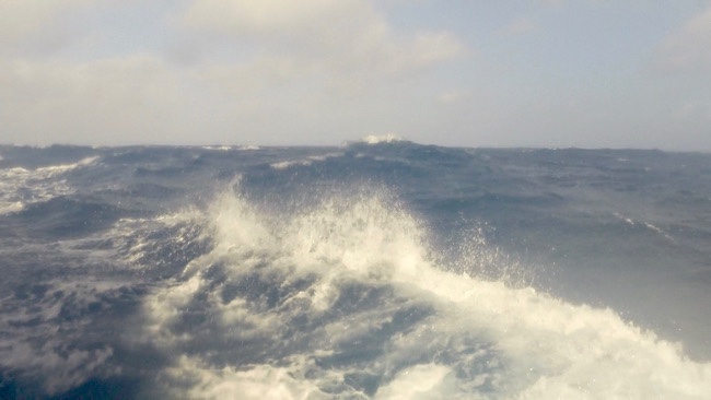 Numbers, it’s all about numbers, distance, miles, the wind. A few days back, birds broke our wind instrument that was mounted on top of the mast. Since then we’ve had no measurement of wind speed. In away, for me, this has been a good thing. No stressing over the wind number. I do believe it’s been significant the past several days. Tonight as the wind howls through the boat rigging and our speed over ground hits 9.2 knots with triple reefed main and genoa sails, not surfing down a wave, kinda glad I didn’t know the wind speed number.