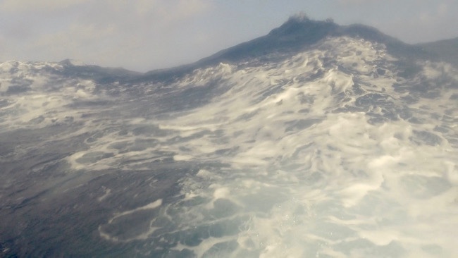 Extremely windy day up to 43knots (per Ohana)with 10-12ft waves, ugh! 5 times today a wave crashed into the cockpit. One entered over the stern. Several waves hit the enclosure panels but didn’t actually enter the cockpit.