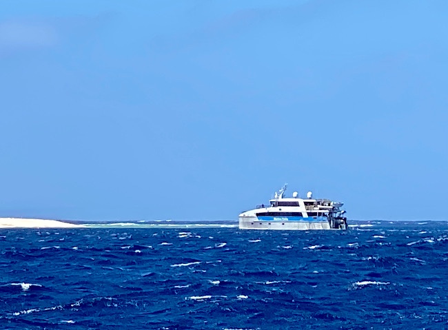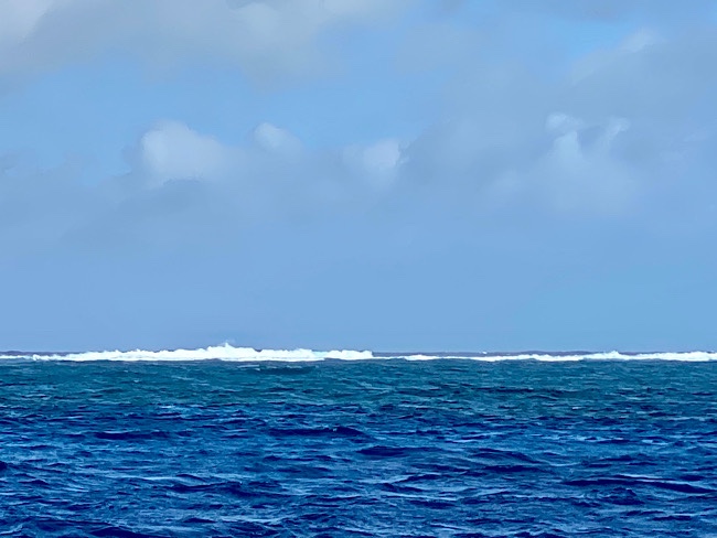 On the 14th day we rested! The anchor was dropped around 4pm inside The Great Detached Reef, at the the edge of the reef on eastern side. With the winds still in the 20’s it was a bit rolly, yet the reef blocked the ocean waves. The waves crashing on the reef sounded like waves crashing on a beach.