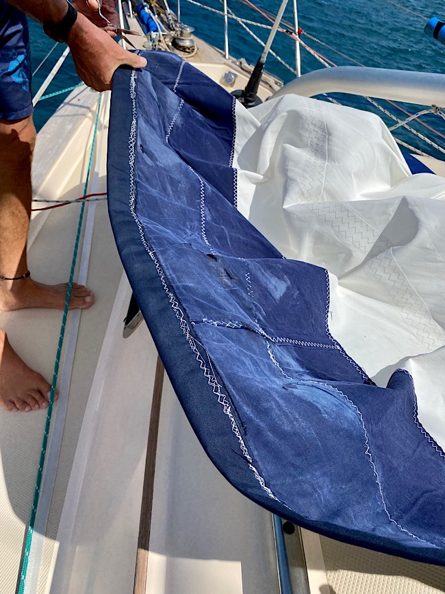 With the wind picking up, we kept the sail on the deck, we will wait to repair the other two sails for less windy day.