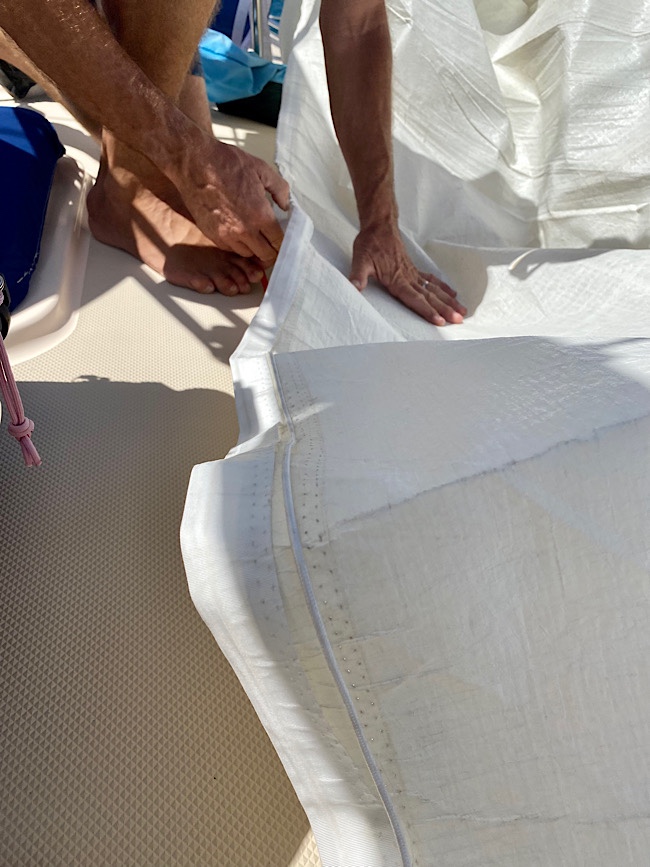 Monday September 6, dinghy chaps repair. Wow, this took all day!