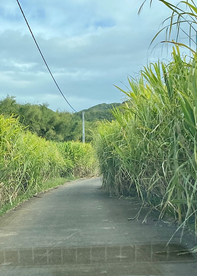 We drove down this road surrounded by sugar cane