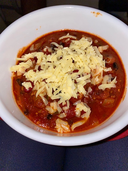 Chili for dinner, topped with an aged British Cheddar Cheese to warm us up!
