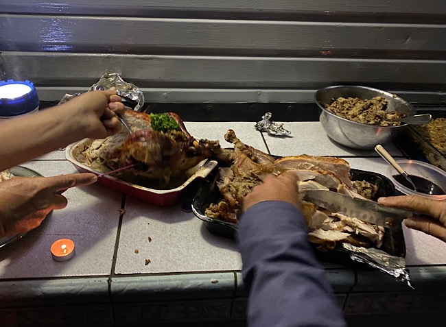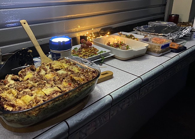 There were 20 people sharing Thanksgiving dinner. We were outside under a covered picnic/bar area enjoying dinner by candlelight, Inflatable lights and flashlights as the electricity was off due to load shedding.