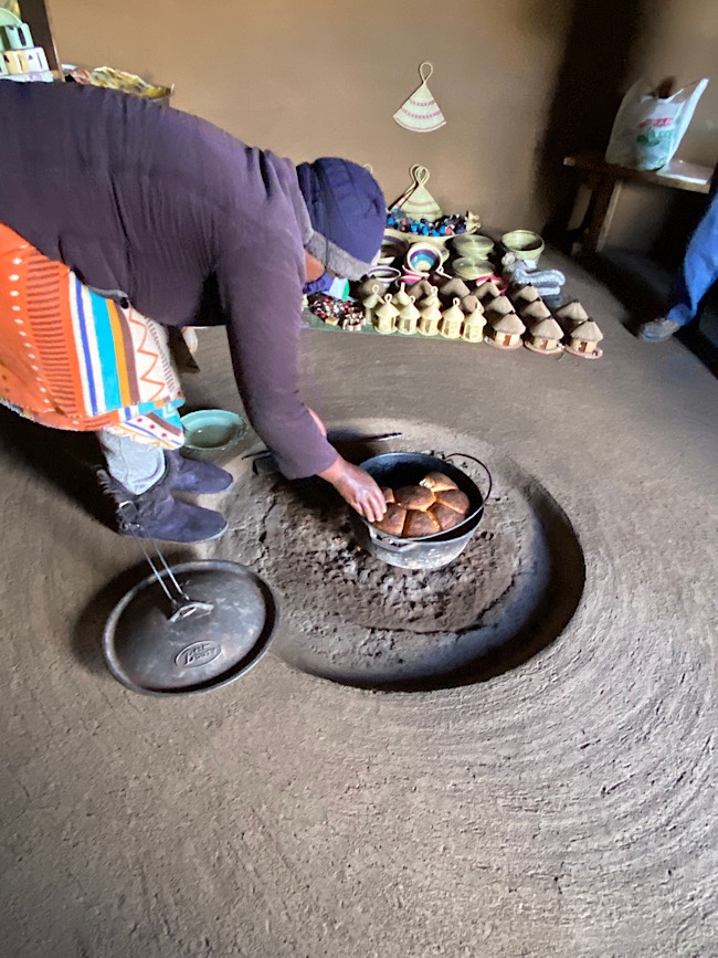 We met Analina, she served us sweet bread and was selling items she had made. We purchased a very nice grass basket and a pair of earrings. After visiting the village we stopped to see Father Emmanuel Siphiwe Thato from the Tower of Strength Ministries where we gave donated items to him.