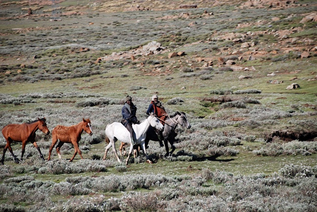 Basotho people are an ethnic group native to Lesotho and South Africa. Villages are often located high in the mountains, above the deep river valleys and flood danger. There you can find many flocks of sheep grazing in the summer growth amongst the villages.