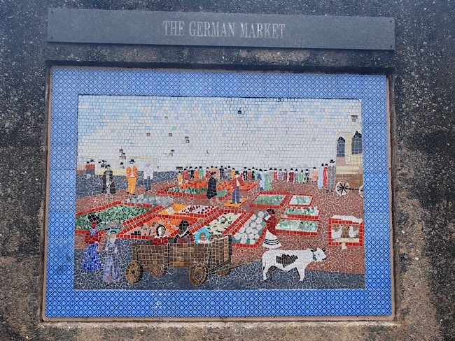 After lunch team Ohana invited us to join them on a city tour. First stop monument to German settlers and murals.
