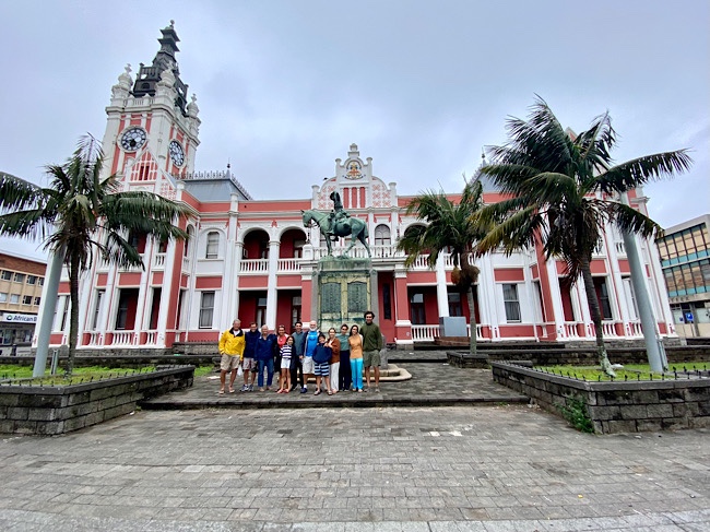 Des Cason, our weather person, came to Durban to meet all of us for lunch. He is seated in the center in the bench.