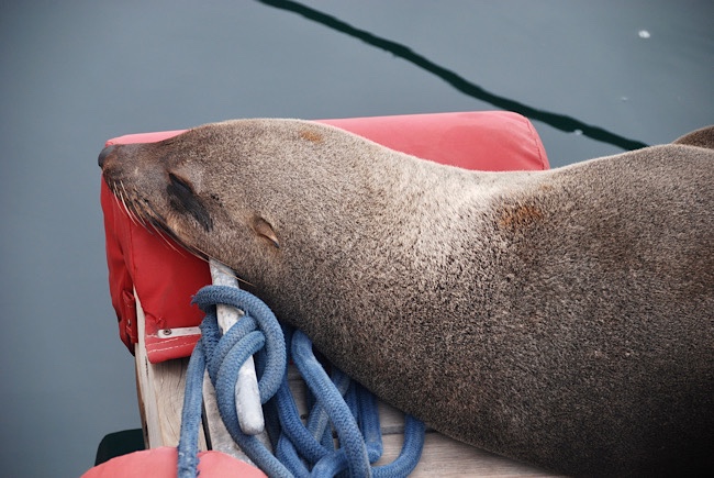 Monday December 27, Trance at V&A Marina, we occasionally share the dock next to the boat with seals and sea lions. Twice that we know of, one has actually jumped up on to our boat and rested on our bow.
