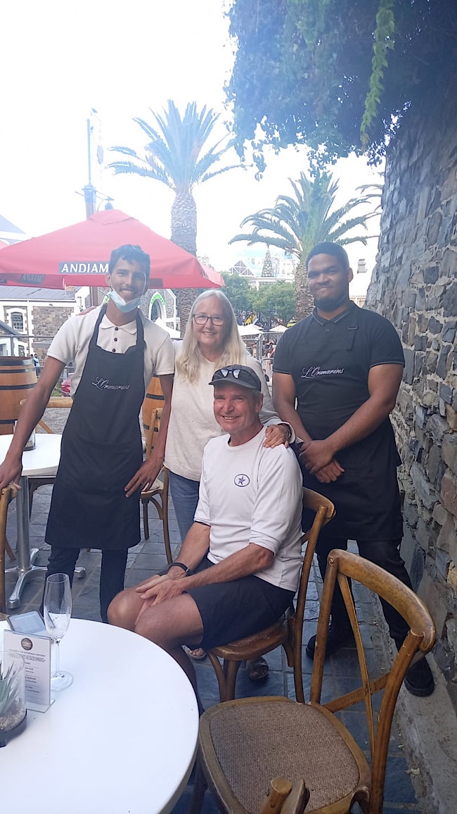 Wednesday December 29, Dan and I had another Wine tasting. This one at the Waterfront Wine Shop at the V&A Waterfront. Several of our cruising friends have mentioned it. They feature a different area wine farms each day. For R100 ($6.00 USD) you can sample four different wines generously poured. Bottles are also available to purchase.