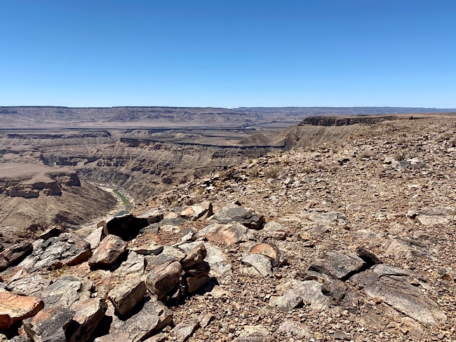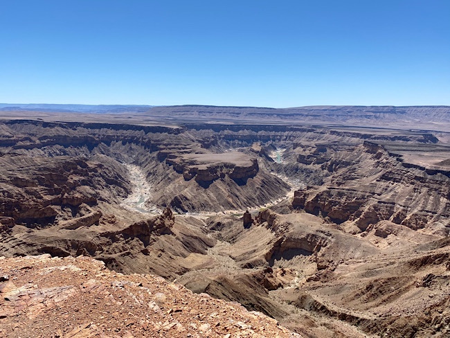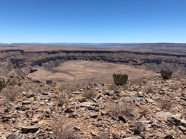 Thursday January 6, In a rented 4×4 vehicle, which is necessary for most roads here, a four hour drive south took us to the Fish River Canyon. Similar in view to the Grand Canyon in Arizona. Depending on which list you find Fish River Canyon second largest in size to the Grand Canyon. There were three other vehicles visiting when we were there.