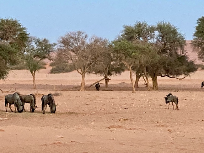 After a 6.5 hour drive we arrived in the town of Sesriem where we stayed at the Sossusvlei Lodge, with dinner and breakfast included. Set in the desert, each room is in it’s own building. We had a wonderful view of the desert.