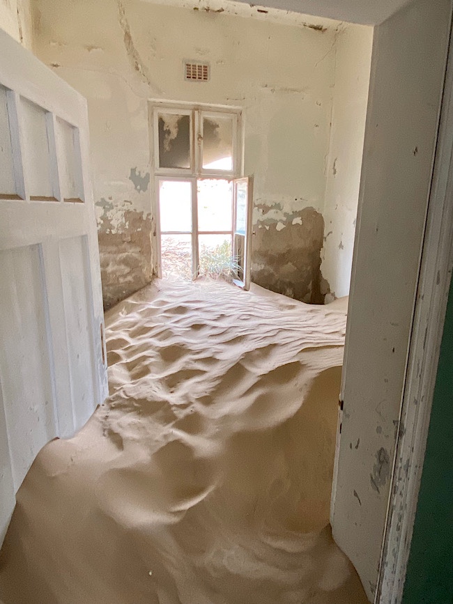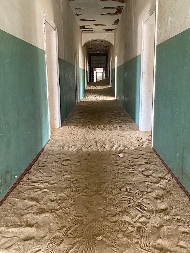 Sunday January 9, The now ghost mining town of Kolmanskop, 15 minutes outside of Luderitz, was once one of the wealthiest in the world. The hospital had the first X-ray machine in the southern hemisphere. Three of the buildings were furnished with period items, the General Store (the sewing machine), the store owners house and a bowling alley. In 1912 one million carats of diamonds were mined, by the 1930s the town’s riches were for the most part depleted. Then diamond deposits were found about 165 miles south, by the Oranjestad River. Many of miners moved there. Kolmanskop was abandoned to the desert in 1956.