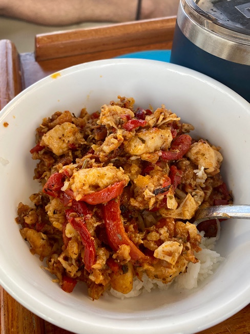 We can’t believe the distance you cover in one day. You eat well on your passages. Very creative. Enjoy your stop.
