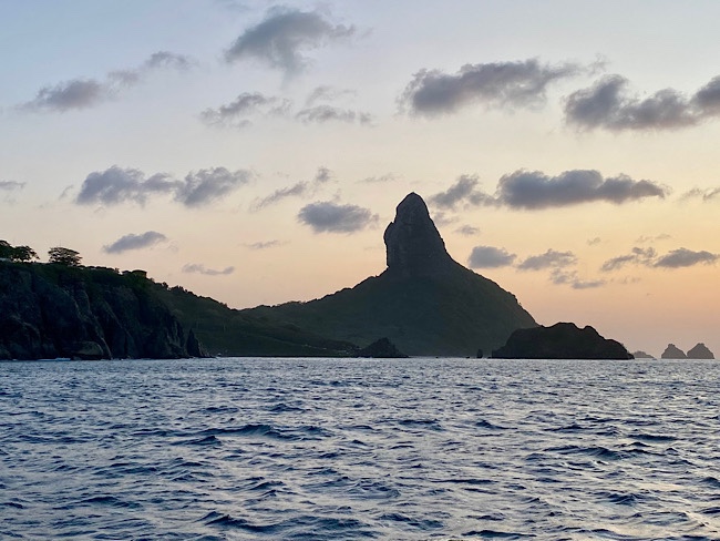 4pm the anchor was dropped off a sandy beach on the island of Fernando de Noronha. Total nautical miles traveled on this passage, 1783, it took 12 days, 9 hours.