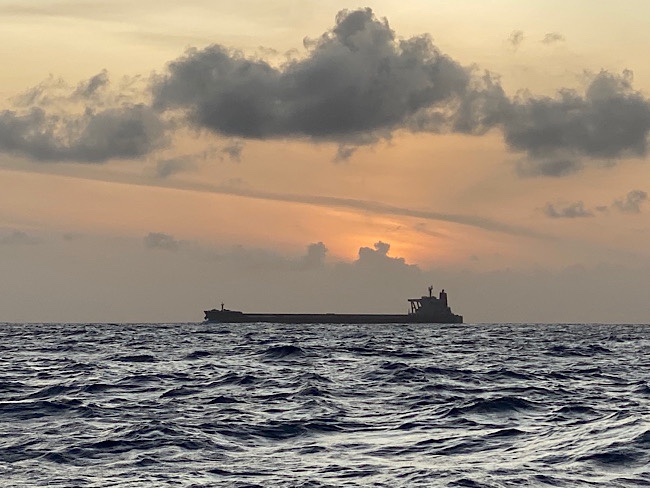 On my watch, I noticed a tanker ship approaching from behind us, pointing directly at our location. At about 7 miles away the ships AIS details appeared, showing its name, size, speed as well as more information about it. There is also a squall getting closer. I radioed the ship asking the captain if he sees us, he replied he did. I told him I felt he was a little too close to us (Closest Point of Approach was less than 1 mile) especially with the storm approaching. The tanker altered its course now parallel to us just under 2 miles apart, going past us into the dark at 16knots.