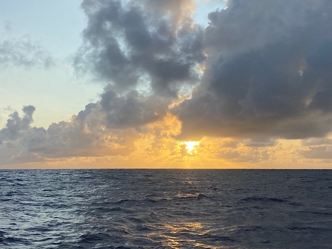 Late afternoon we hit the “sweet spot” in North Brazil Current. With 16 knots of wind, our SOG (speed over ground) was 11.2 knots! The current was flowing 2.5 to 3 knots. The majority of the night we were cruising over 10 knots SOG.